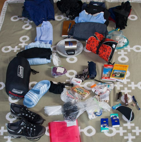 Die gesamte Ausrüstung für meinem ersten Jakobsweg beinhaltete z.B. auch noch ein zusätzliches Paar Schuhe.