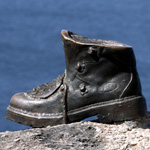 Der Schuh in Finisterre am Ende der Welt auf dem Jakobsweg in Spanien.