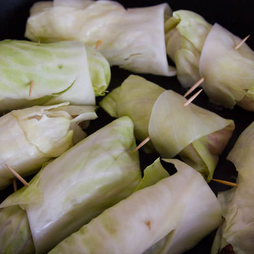 Polnische Kohlrouladen locker vereint in der Pfanne kurz vorm Anbraten Weiterlesen »
