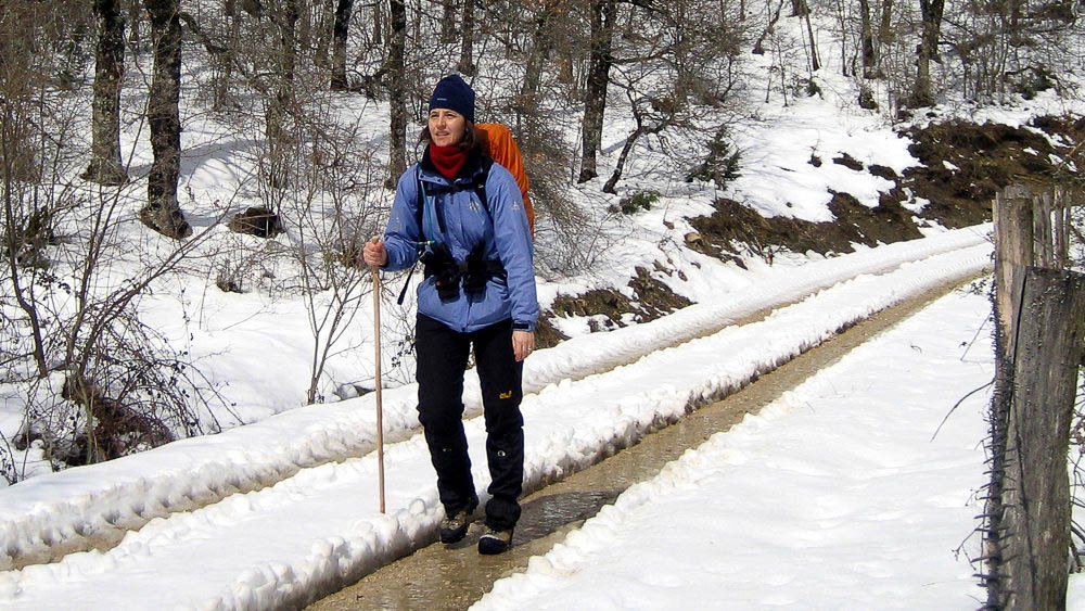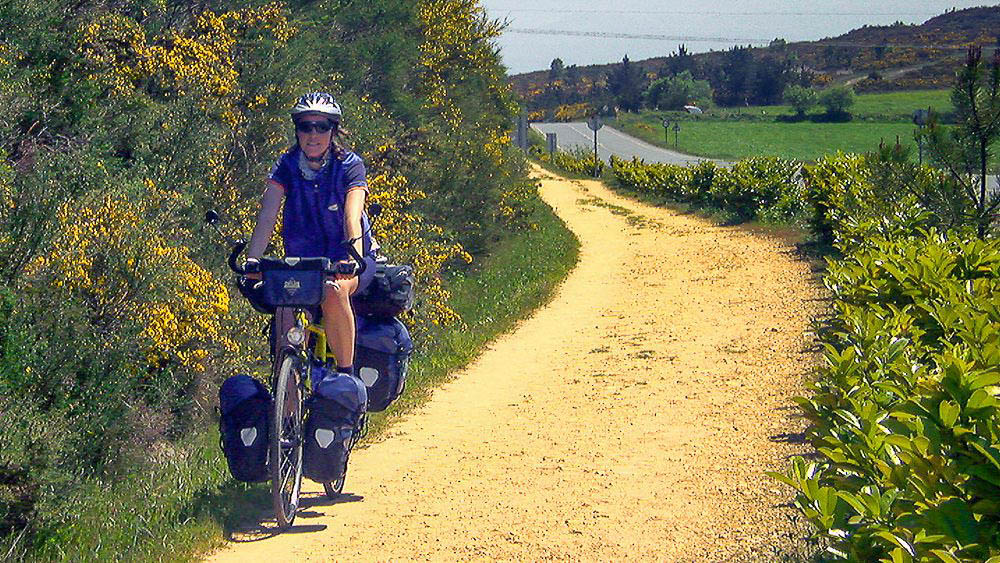 Beate Steger auf dem Jakobsweg Camino Francés während ihrer einjährigen Fahrrad-Weltreise von 2001 – 2002