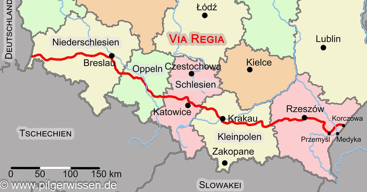 Die von Beate Steger selbst gezeichnete Karte zeigt den Verlauf der Via Regia in Polen