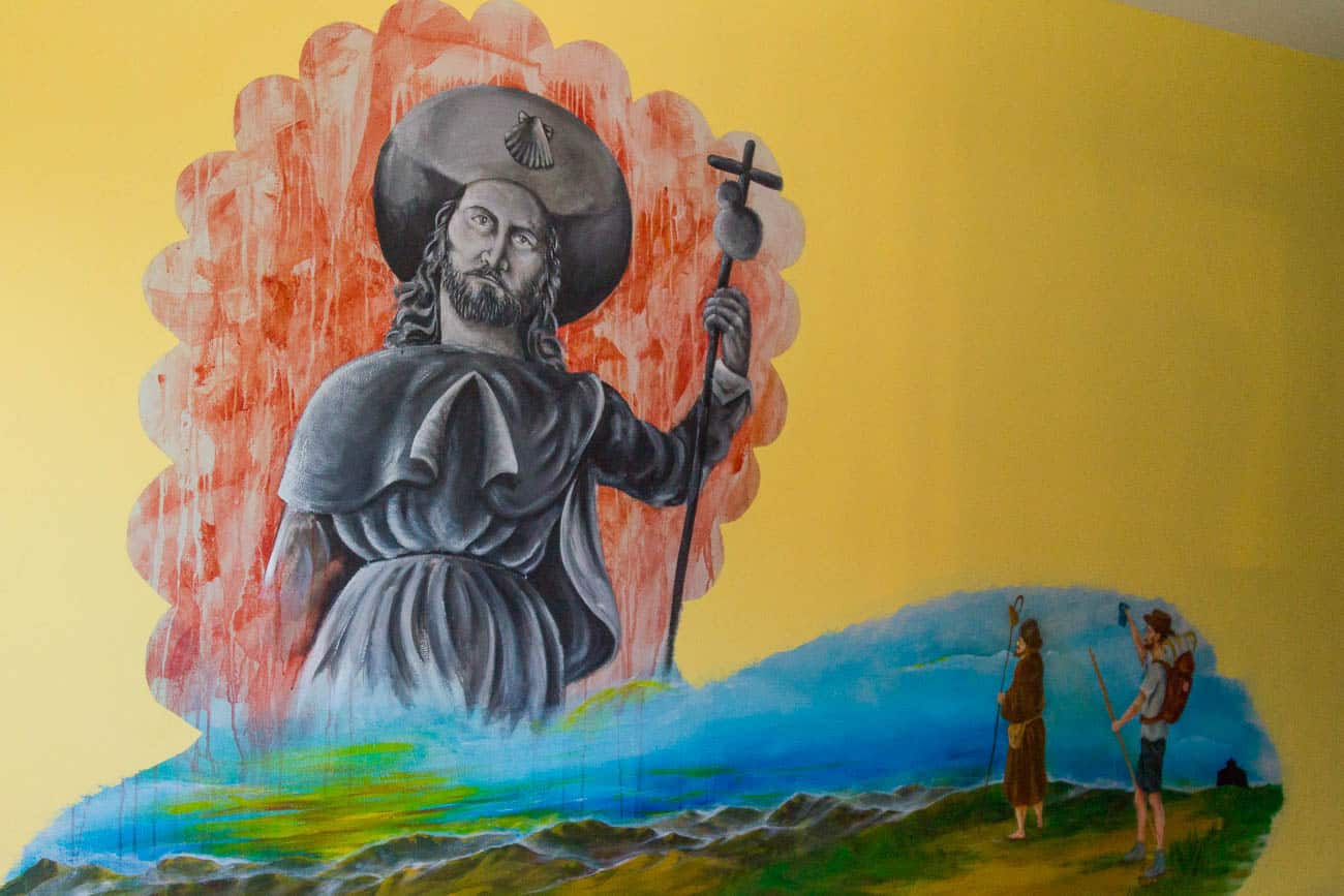 Bildnis Jakobus in der Pilgerherberge von Rates auf dem portugiesischen Jakobsweg