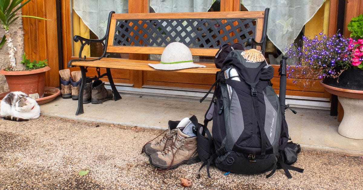 Rucksack, Pilgerhut und Schuhe sind bereit zum Abmarsch